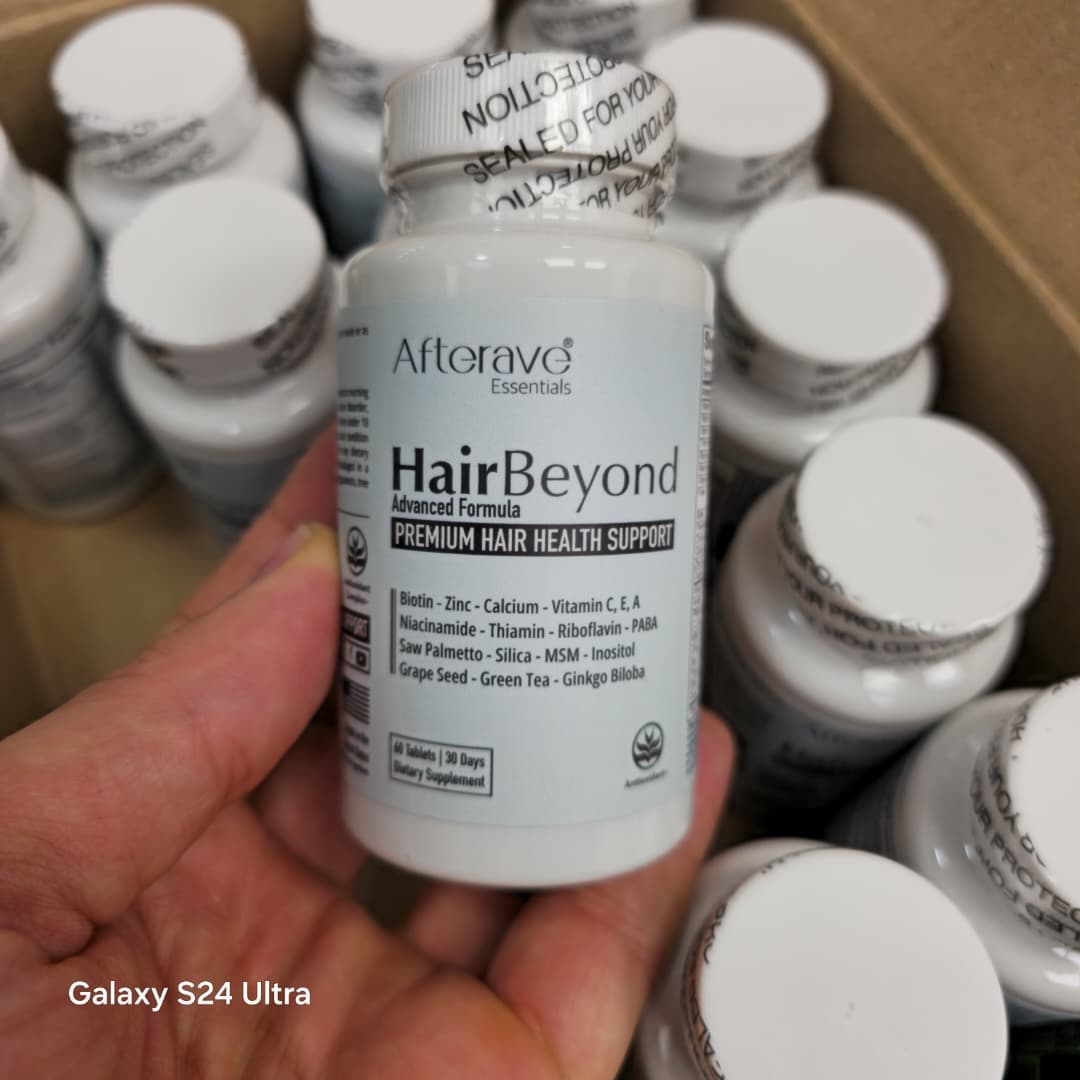 Afterave Hair Beyond یک مکمل تخصصی برای تقویت رشد مو، کاهش ریزش و افزایش ضخامت تارهای مو است که با ترکیبی هدفمند از ویتامین‌ها، مواد معدنی و ترکیبات مؤثر گیاهی فرموله شده است.