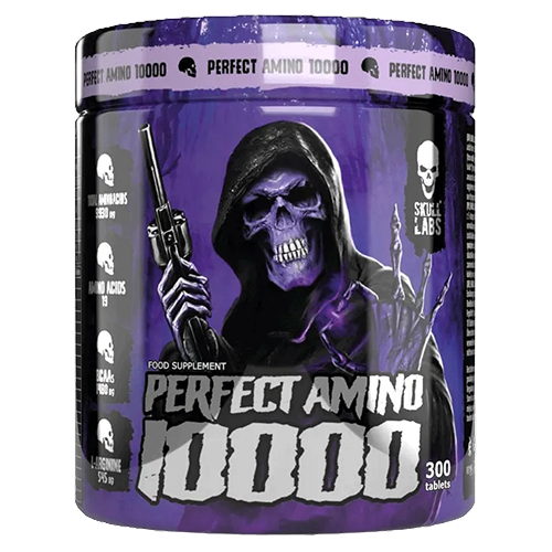 Perfect Amino 10000 از برند Skull Labz یک مکمل حرفه‌ای حاوی طیف کامل آمینواسیدهای ضروری (EAA) است که برای عضله‌سازی، جلوگیری از تحلیل عضلات، افزایش ریکاوری و بهبود عملکرد ورزشی طراحی شده است.